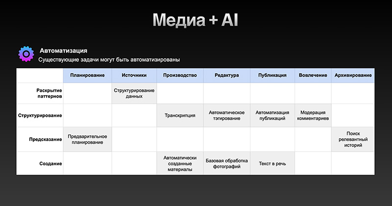 Штодзень прадстаўнікі медыяў вырашаюць адны і тыя ж марудныя задачы, якія патрабуюць часу. ШІ можа дапамагчы ў выпадку, калі ёсць пэўны алгарытм і працу можна аўтаматызаваць.