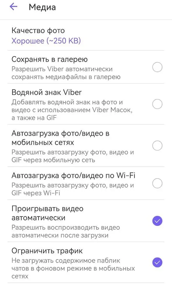 Раздзел «Медыя» ў наладах Viber. Фота: «Люстэрка»