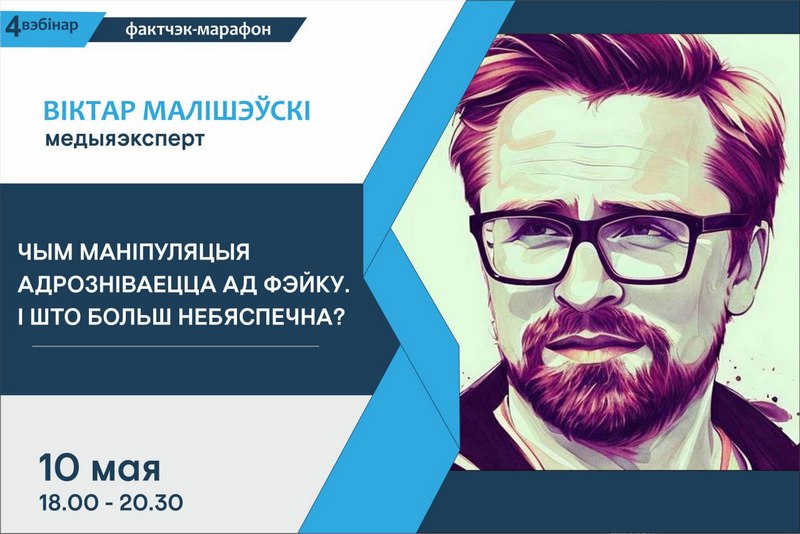 Варкшоп «Чым маніпуляцыя адрозніваецца ад фэйку. І што больш небяспечна?» ад медыяэксперта Віктара Малішэўскага (рэгістрацыя да 9 мая)