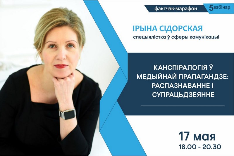 Вэбінар Ірыны Сідорскай «Канспіралогія ў медыйнай прапагандзе: распазнаванне і супрацьдзеянне» (рэгістрацыя да 16 мая)