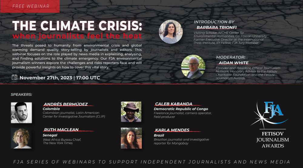 Организация Fetisov Journalism Awards (FJA) приглашает на вебинар о роли медиа в объяснении, анализе и поиске решения проблем в области экологического кризиса.