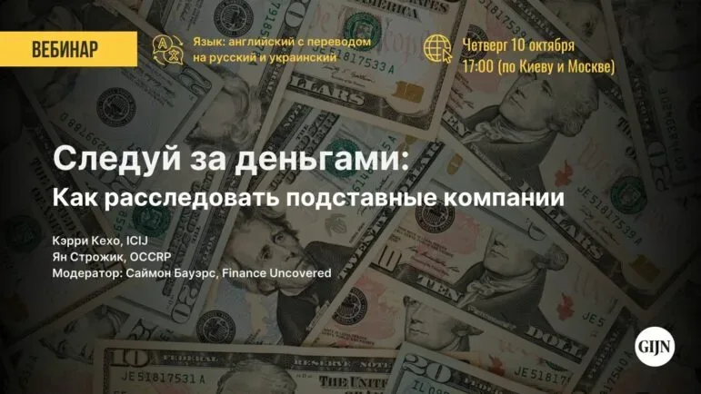 Вэбінар GIJN «Ідзі за грашыма: Як расследаваць дзейнасць падстаўных кампаній» (10 кастрычніка)