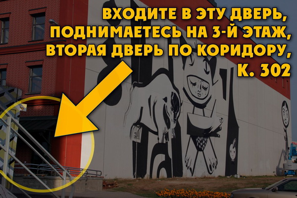 Ориентиры: здание с черно-белым граффити на всю стену напротив пространства ЦЭХ (ул. Октябрьская, 16).