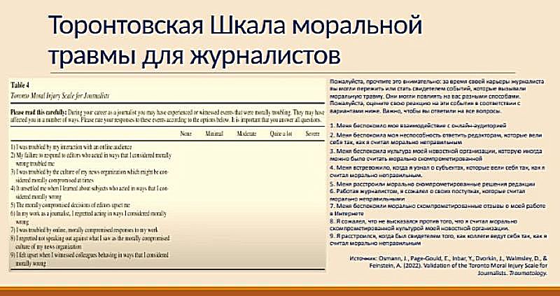 И так же, как другие люди с опытом неизлечимой травмы, эти журналисты могут, сами не желая того, причинять вред героям своих материалов, своей аудитории, коллегам, близким и самим себе. Поэтому необходимо особое внимание уделять ответственности журналистов, редакций и менеджеров медиа по работе с собственным психическим здоровьем, созданию травма-информированной среды в организации и практикам заботы о себе.
