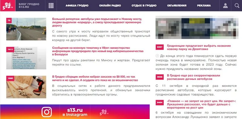 У пераліку «экстрэмісцкіх фармаванняў» згадваюцца сайт www.s13.ru і афіляваныя з ім інтэрнэт-рэсурсы: youtube.com/@s13ru_official; t.me/s13.ru; ok.ru/s13ru; vk.com/s13ru; facebook.com/blogGRODNO; instagram.com/s13.ru.