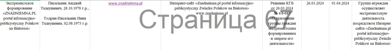 КДБ лічыць, што «група грамадзян здзяйсняе экстрэмісцкую дзейнасць праз інтэрнэт-сайт «Znadneimna.pl portal informacyjno-publicystyczny Zwiazku Polakow na Bialorusi».