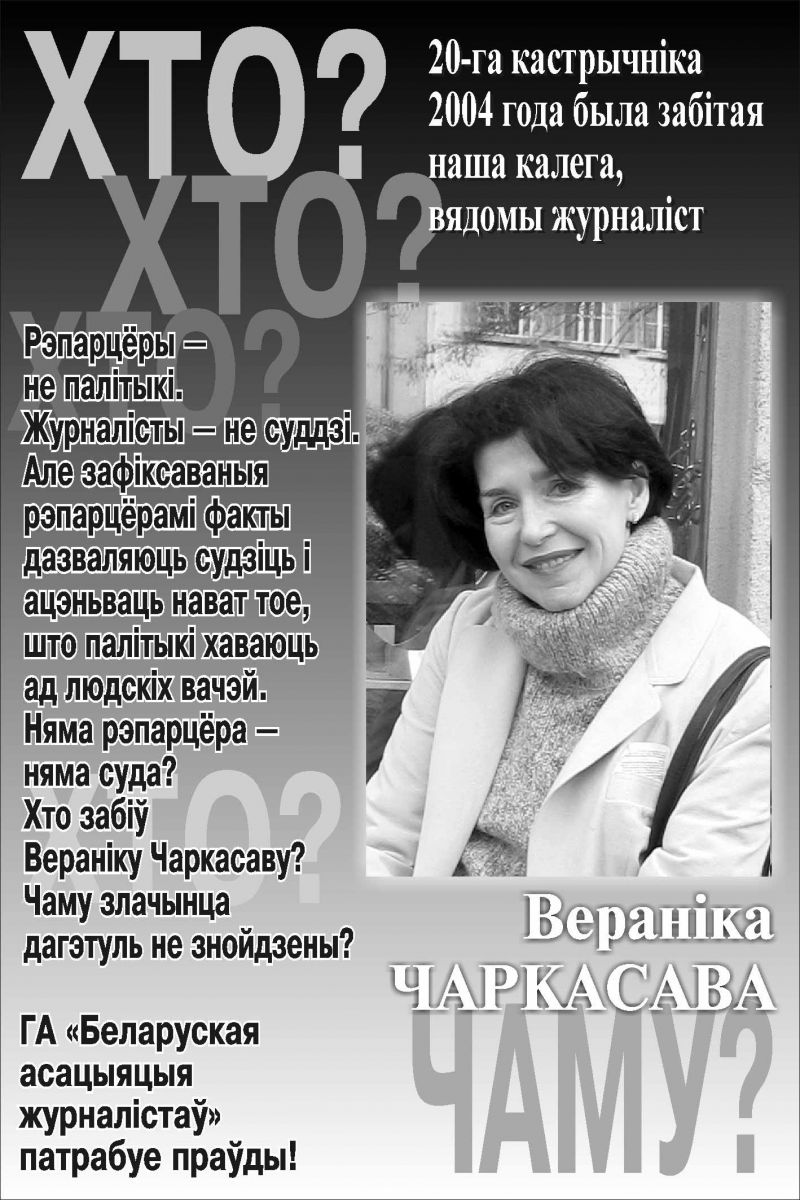 Жестокое убийство получило резонанс в Беларуси и мире: Вероника Черкасова была независимой журналисткой, а ее гибель произошла всего через несколько дней после проведения референдума, который позволил Александру Лукашенко переизбираться на пост неограниченное число раз.