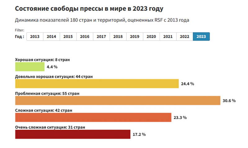 Во-первых, угрозой все чаще становится не вооруженный конфликт, а целенаправленные нападки на прессу. Так, после прихода к власти талибов в Афганистане в 2021 году многих журналистов избивали и сажали в тюрьмы.