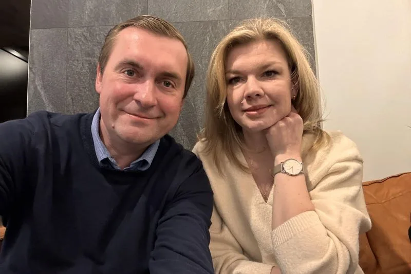 Ксенія Луцкіна і кіраўніком фонда BYSOL Андрэем Стрыжаком пасля эвакуацыі. Фота: старонка Андрэя Стрыжака ў Facebook