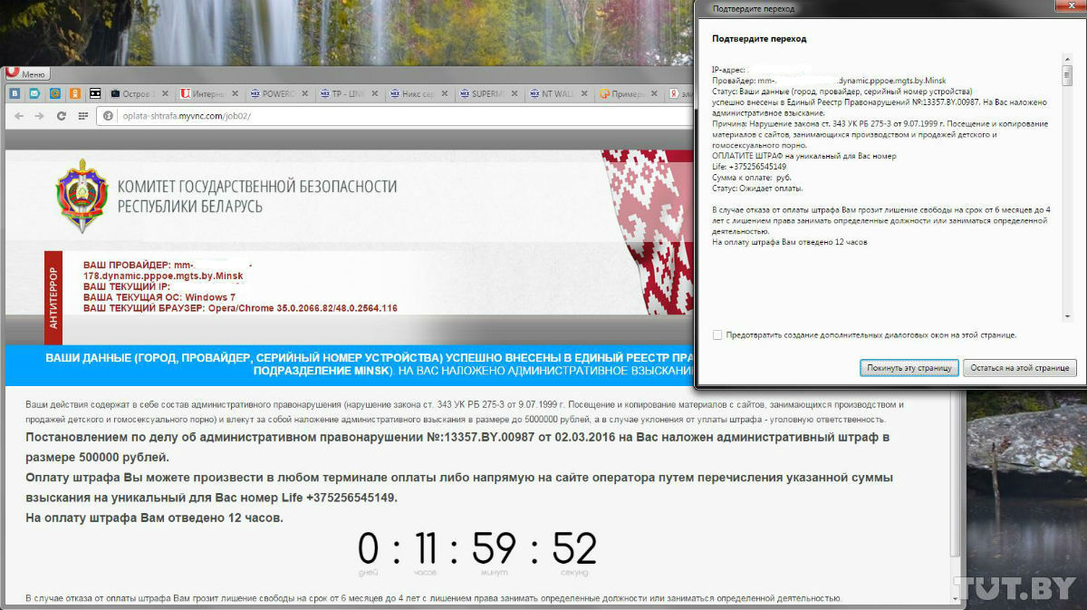 Несмотря на то, что число киберпреступлений в Беларуси постоянно растет, в нашей стране довольно высокий уровень противодействия подобным злодеяниям. Иногда с законопослушными белорусами случаются курьезные истории. Так около пяти лет назад взрослый житель Гродно пришел в милицию, чтобы добровольно заплатить штраф. Оказалось, что во время посещения порносайта, компьютер гродненца был атакован вирусом-блокиратором. В окне браузера возникло сообщение о том, что компьютер будет заблокирован МВД Республики Беларусь, пока его владелец не оплатит «штраф». Именно за тем, чтобы заплатить государству за просмотр порно, гродненец и пришел в милицию.