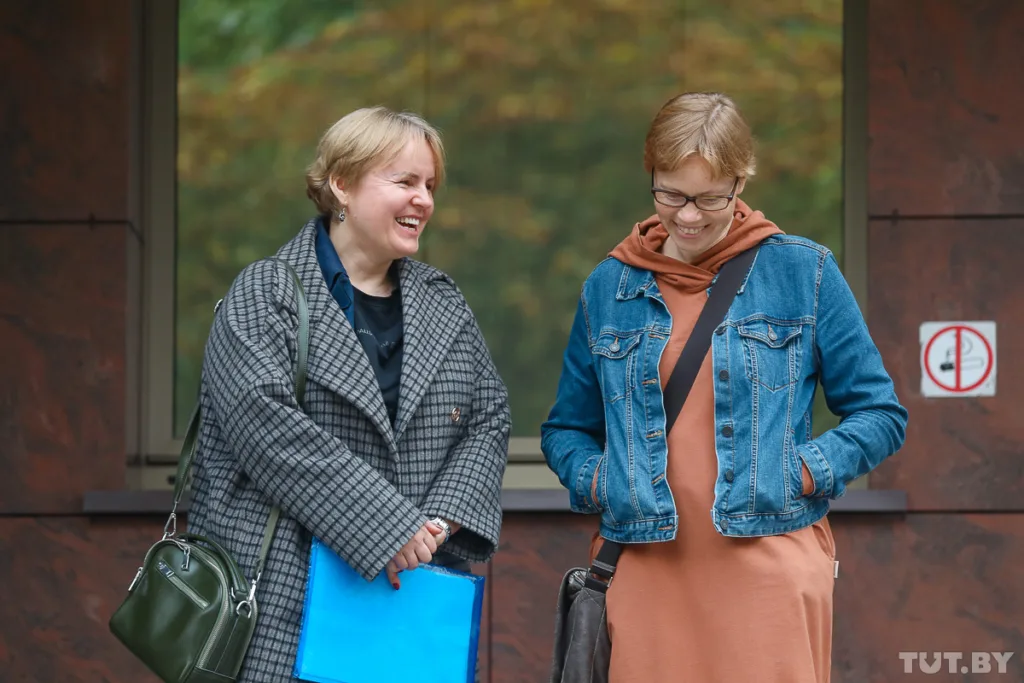 Гендырэктарка партала TUT.BY Людміла Чэкіна і галоўная рэдактарка TUT.BY Марына Золатава пасля паседжання па пазове Міністэрства інфармацыі пра пазбаўленне TUT.BY статусу СМІ, 8 кастрычніка 2020 года. Фота: TUT.BY