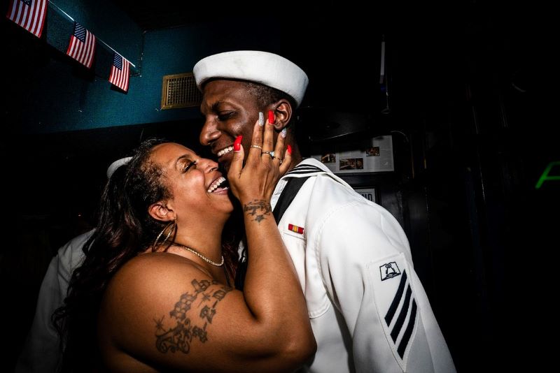 «Поцелуй на исходе вечера», шорт-лист в категории «Уличная фотография». «Все любят Неделю флота в Нью-Йорке. Каждый день дамы приезжают в город, чтобы танцевать всю ночь напролет с приезжими моряками. Но морякам приходится уходить еще до полуночи, чтобы вернуться на свои корабли, так как их „золушкина свобода“ подходит к концу. Эта дама прекрасно провела время и пожелала спокойной ночи своему герою». Фото: Kathryn Mussallem / Sony World Photography Awards 2024