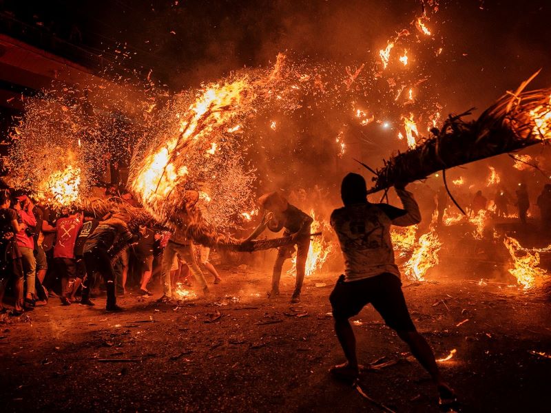 «Война факелов», шорт-лист в категории «Движение». «Обор-оборан, или „война факелов“, — это традиционная церемония, проводимая жителями индонезийской провинции Джепара». Фото: Herman Morrison / Sony World Photography Awards 2024