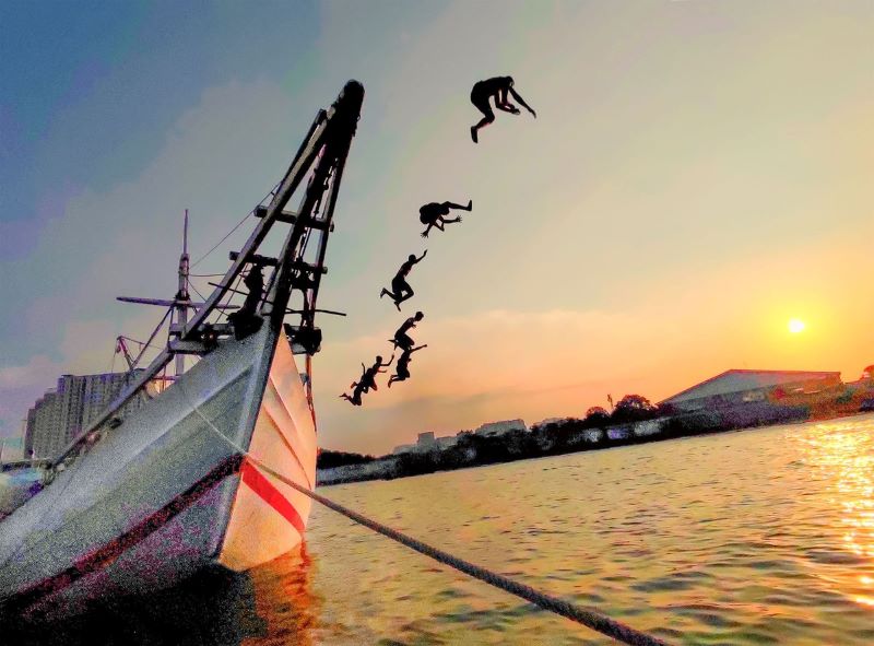 «Преодолеть предел», шорт-лист в категории «Движение». «Дети играют в гавани Сунда Келапа, Северная Джакарта, Индонезия». Фото: Jelly Febrian / Sony World Photography Awards 2024