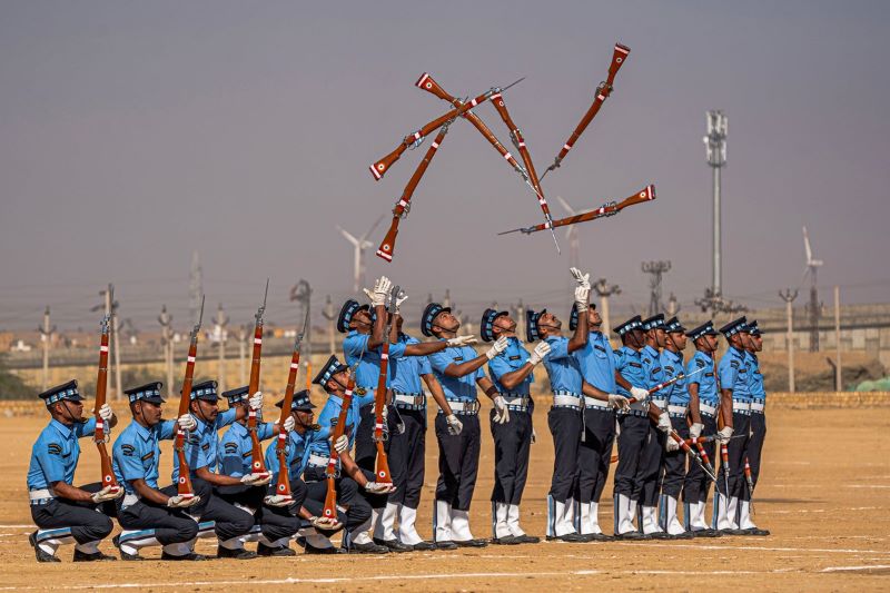 «Поворачивающая белая лошадь», шорт-лист в категории «Движение». «Во время поездки в турецкую Каппадокию рано утром я отправился в долину Гёреме, чтобы сфотографировать воздушные шары, взлетающие рядом с конюшней. Лошади бегали вокруг, что позволило мне сделать этот снимок». Фото: Sarah Wouters / Sony World Photography Awards 2024 «Вскидывая оружие», шорт-лист в категории «Путешествия». «Военное представление на ежегодном фестивале пустыни в Джайсалмере, штат Раджастан, Индия». Фото: Wasiri Gajaman / Sony World Photography Awards 2024