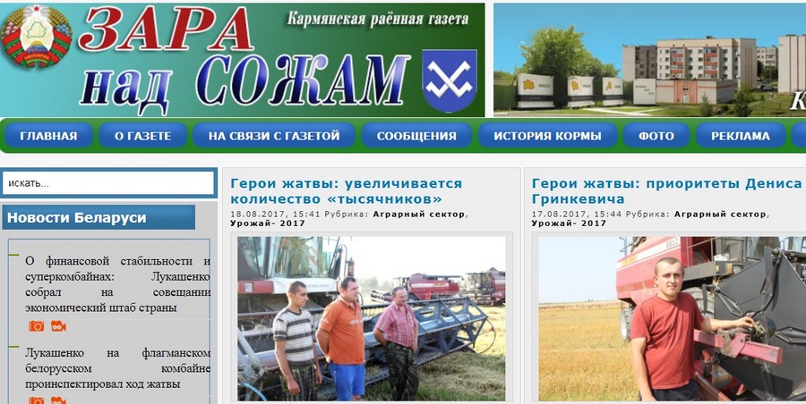 К примеру, издание Кормянского района «Зара над Сожам» создало даже отдельную рубрику «Герои жатвы».