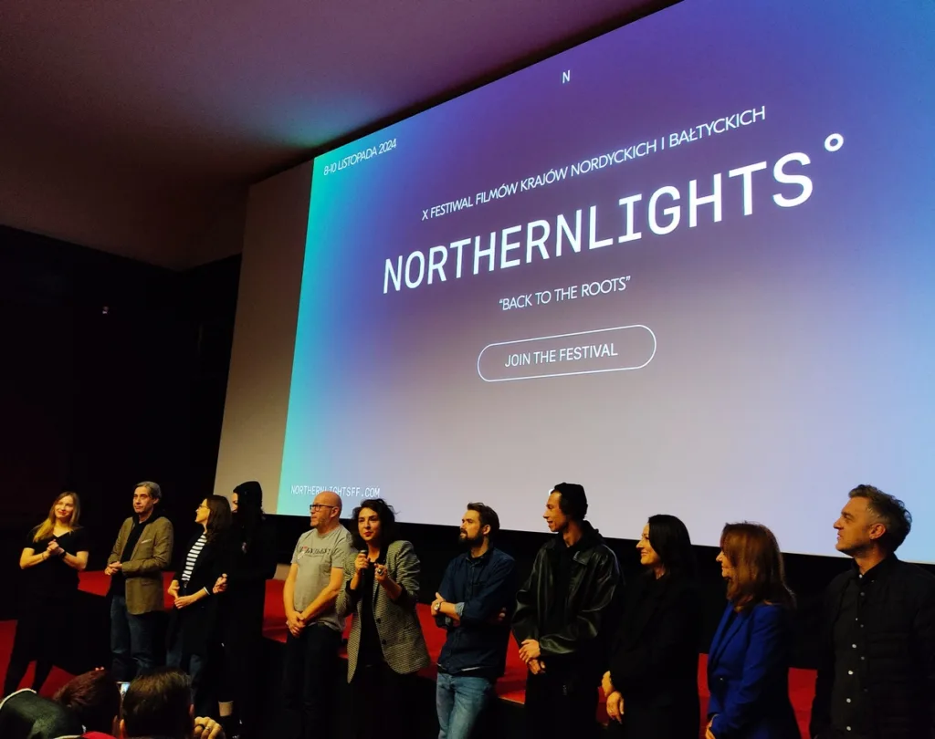 Каманда стваральнікаў фільма «Пад шэрым небам» на паказе падчас фестывалю «Паўночнае ззянне» ў Варшаве 9 лістапада 2024 г. Фота Алены Ляшкевіч