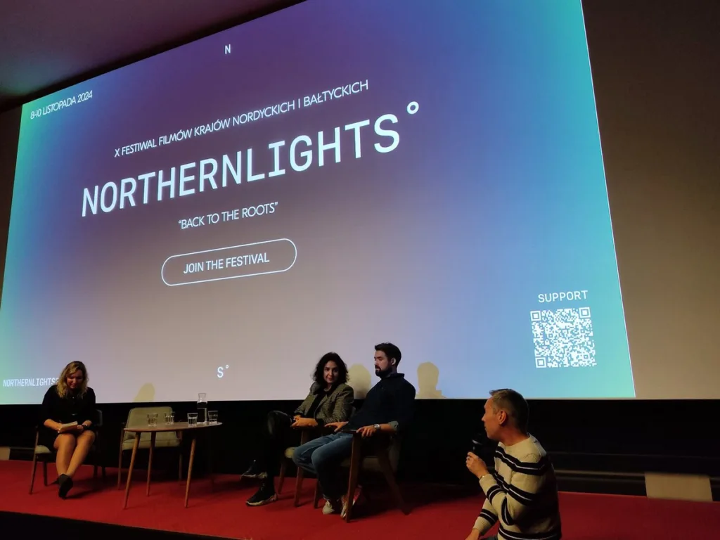 Дыскусія пасля паказу фільма «Пад шэрым небам» на фестывалі «Паўночнае ззянне» ў Варшаве 9 лістапада 2024 г. Фота Алены Ляшкевіч