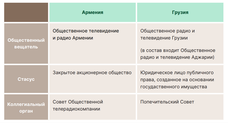 «Общественная телерадиокомпания создается государством для обеспечения конституционного права граждан, а именно: права свободно получать политическую, экономическую, образовательную, культурную, детско-юношескую, научно-просветительскую информацию, информацию об армянском языке и истории, спортивную, развлекательную и иную важную и значимую для общества информацию», — гласит закон «О радио и телевидении» Армении.