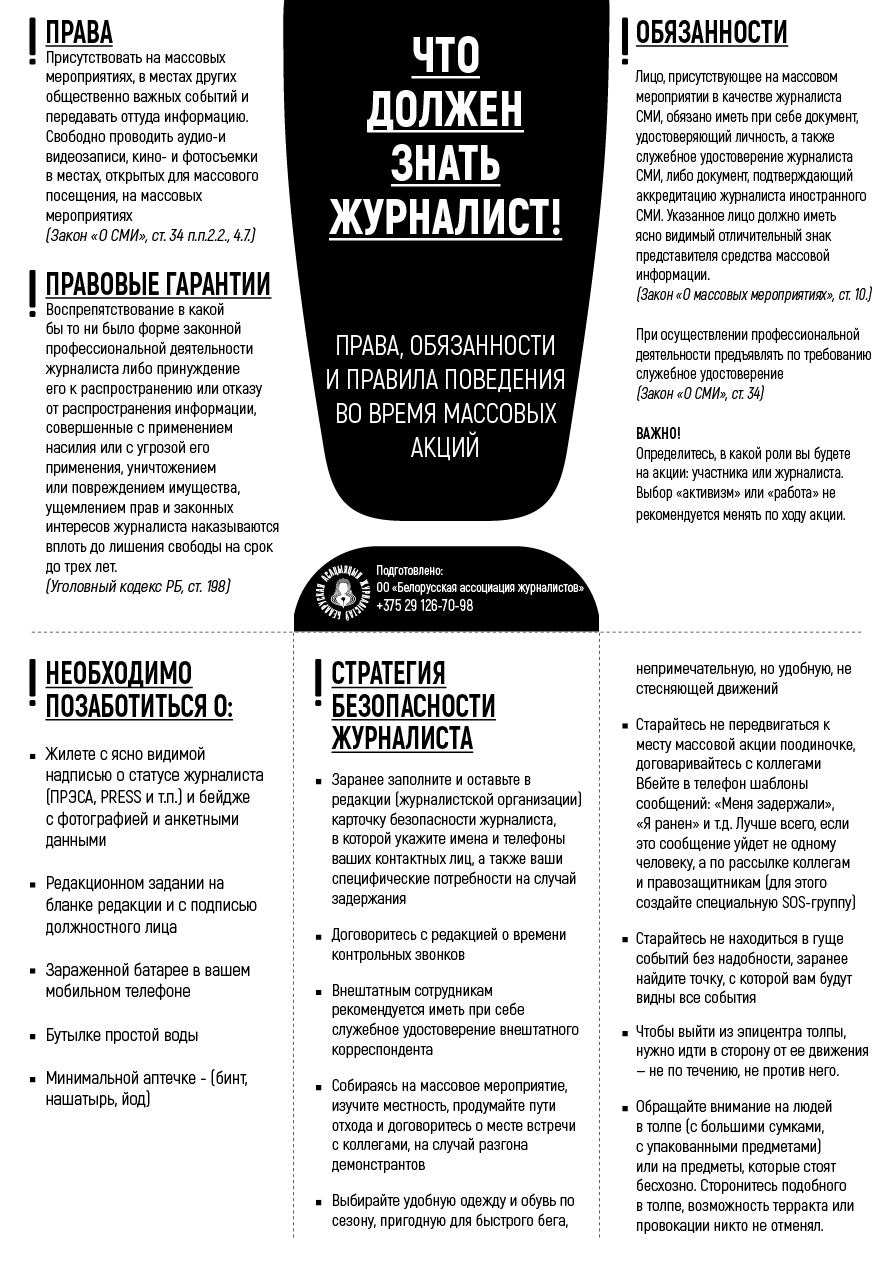 ГА «Беларуская асацыяцыя журналістаў» падрыхтавала памятку для калег «Як працаваць падчас масавых вулічных акцый».
