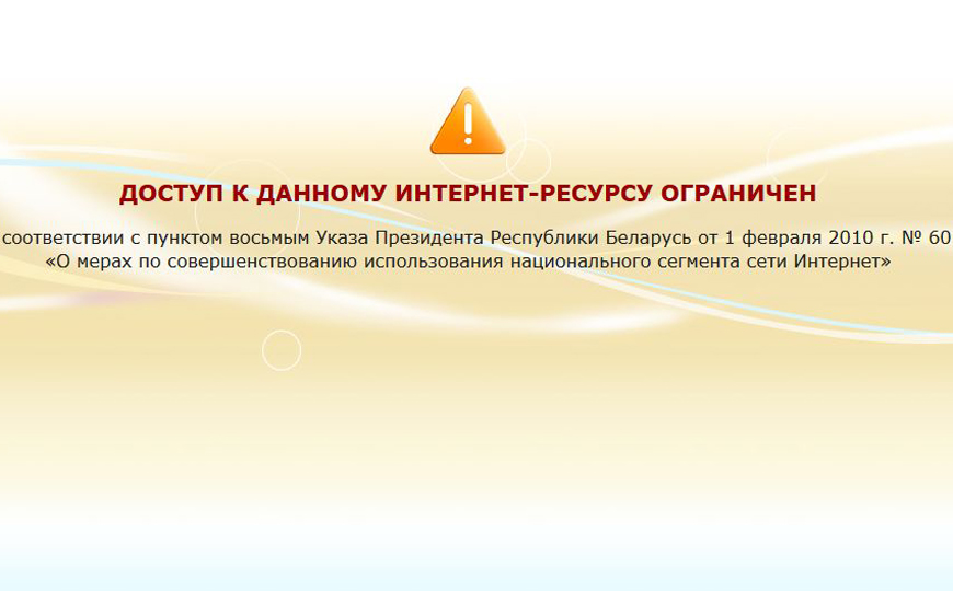 «У адпаведнасці з Законам Рэспублікі Беларусь ад 17 ліпеня 2008 года «Аб сродках масавай інфармацыі» 15 чэрвеня 2015 г. Міністэрства інфармацыі Беларусі прыняло рашэнне аб абмежаванні доступу да інфармацыйнага рэсурсу kyky.org...»