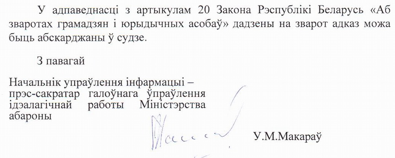 Міністэрства абароны адказала БАЖу (дакумент)