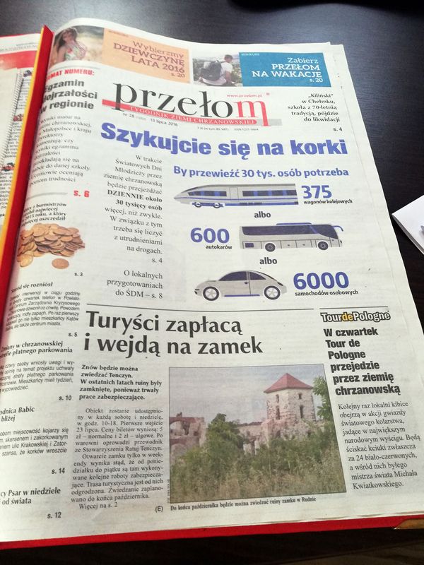 — Час зараз для нашага выдання няпросты. Тыраж газеты змяншаецца, сайт, канешне, пакрыху набірае абароты, колькасць наведвальнікаў расце, але мы разумеем, што ёсць мяжа. Бо наш чытач хоча бачыць мясцовыя навіны, яму больш цікава, што адбываецца побач з ім, а не тое, што здараецца, напрыклад, у Кракаве, — распавяла спадарыня Алісія Маленда, выдавец Tygodnik przelom.