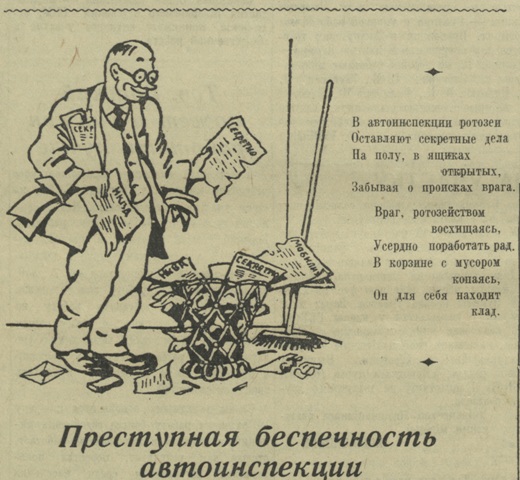 Разам з тым пісалі і пра праблемы ў працы тагачаснай міліцыі. “Пытанні пільнасці ў органах НКУС займаюць выключна важнае месца. У сувязі з гэтым вялікае значэнне маюць пытанні захавання дзяржаўнай таямніцы. […] Праверка выявіла шэраг абуральных фактаў, асабліва ў адзелах БКМ (барацьба з крадзяжамі маёмасці) і ДАІ. […] Увечары спецкамісія без праблем увайшла ў памяшканне кваліфікацыйнай камісіі, бо дзверы не былі зачыненыя. На стале статыста таварыша Міленькай ляжала дакументацыя. У пакоі сакратара ДАІ таварыша Бененсона на падлозе, каля шафы, у адчыненым выглядзе ляжалі загады НКУС СССР і БССР. Тут жа ляжала справа з грыфам асаблівай важнасці. Усе 5 картатэчных шафаў у пакоі № 58 былі адчыненыя. Безтурботнасць супрацоўнікаў аўтаінспекцыі блізка мяжуе са злачынствам”.