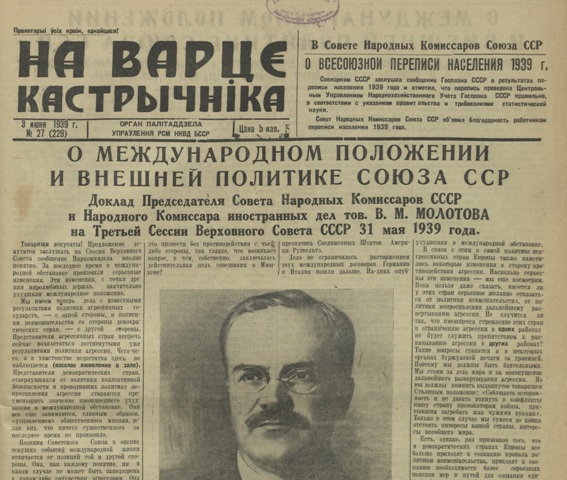 У ліпені 1939 года ў Мінску гучна адзначылі “XIX гадавіну вызвалення Беларусі ад белапалякаў”. Гэтую падзею газета “На варце Кастрычніка” назвала “вялікім святам беларуска народу”. А ўжо ў верасні 1939 года пачалася Другая сусветная вайна і Чырвоная Армія ўвайшла ў Заходнюю Беларусь. Гэтая падзея актыўна асвятлялася на старонках міліцэйскай газеты, дзе справаздачы з мітынгаў савецкіх міліцыянераў суседнічалі з франтавымі зводкамі “з Захаду”. У той час у галоўнай газеце міліцыі БССР друкаваліся…паведамленні вярхоўнага камандавання германскага войска.