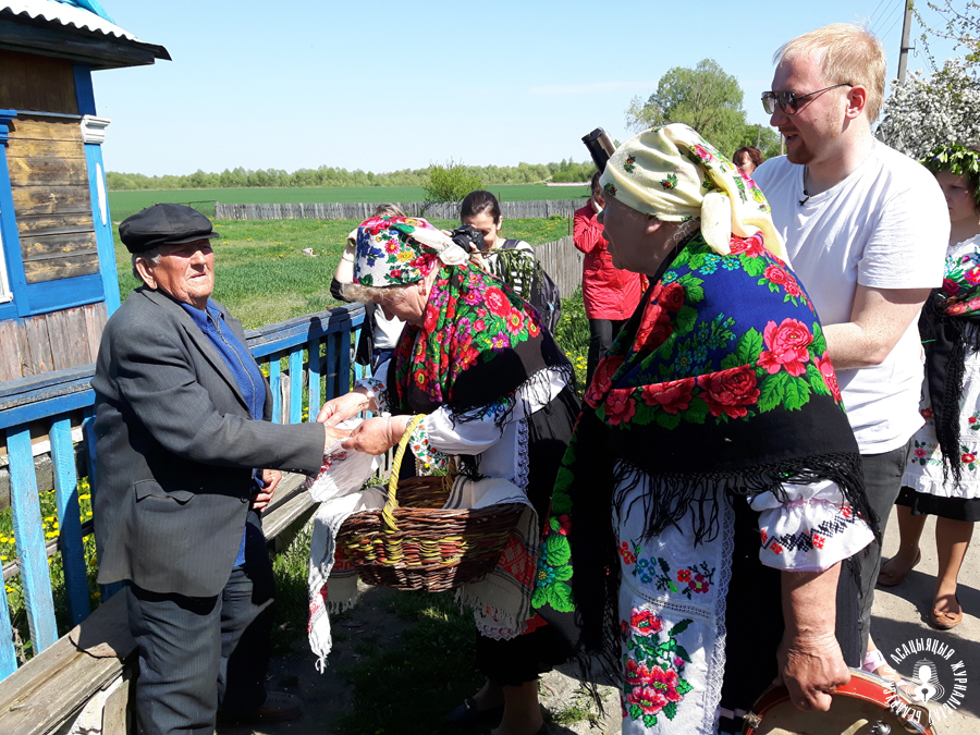 Аддаўшы пашану зямельцы, абраднікі з поля зноў-такі праз “царскія вароты” вяртаюцца назад у вёску. Ідуць з песнямі пад гармонік Мікалая Леўкаўца, карагодзяць каля сядзібаў вяскоўцаў. Музычна-тэатральныя зычанні мець у новым земляробчым сезоне добры ўраджай у полі і агародзе, прыплод у хац і хляве ўлагоджваюць душы вяскоўцаў. На знак падзякі гаспадары і гаспадыні выносяць абраднікам свае пачастункі — яйкі, пірагі ды розныя іншыя хатнія прысмакі.
