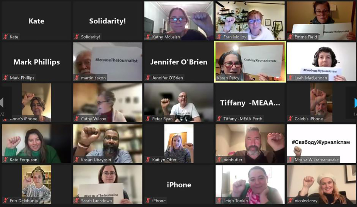 Пра нашу бяду ведаюць і на далёкім кантыненце, дзе таксама далучыліся да марафону. «Альянс медыяў, забаў і мастацтваў» (MEAA) падтрымаў акцыю і прыняў рэзалюцыю на знак падтрымкі сябраў БАЖ, якія сутыкнуліся з жорсткім пераследам з боку ўладаў, аж да турэмнага зняволення», — паведамілі ў сацсетках чальцы альянсу.