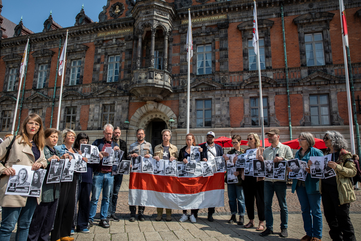 — Многія з беларускіх журналістаў і журналістак не толькі нашы калегі, але і сябры. Мы салідарныя з імі і патрабуем неадкладнага вызвалення калег, якія ні ў чым не вінаватыя. Гэта не ананімныя людзі, не проста партрэты, гэта чалавечыя лёсы і лёсы іх сем’яў. Таму мы тут і патрабуем іх вызвалення. Мы салідарныя з імі, — цвёрда заявілі ўдзельнікі.