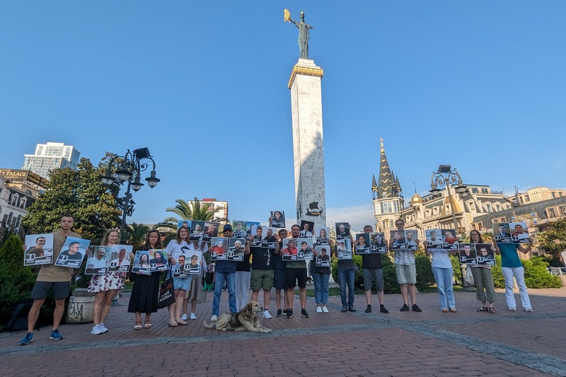 Беларускія медыйшчыкі Батумі выйшлі на цэнтральную плошчу з партрэтамі палітзняволеных калег
