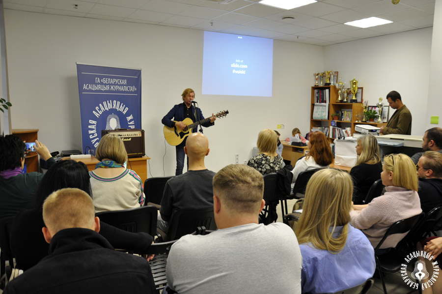27 верасня, за месяц да вялікага сольнага канцэрта, кароль беларускай рок-сцэны і сябра Беларускай асацыяцыі журналістаў Лявон Вольскі сыграў бясплатны кватэрнік у офісе нашай арганізацыі.