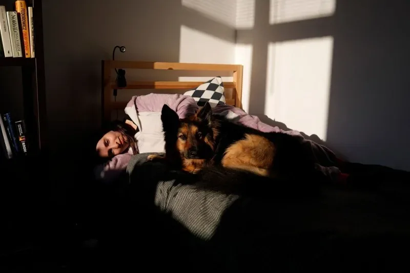Сабака Эрык са сваёй гаспадыняй і сяброўкай Настай Лойка