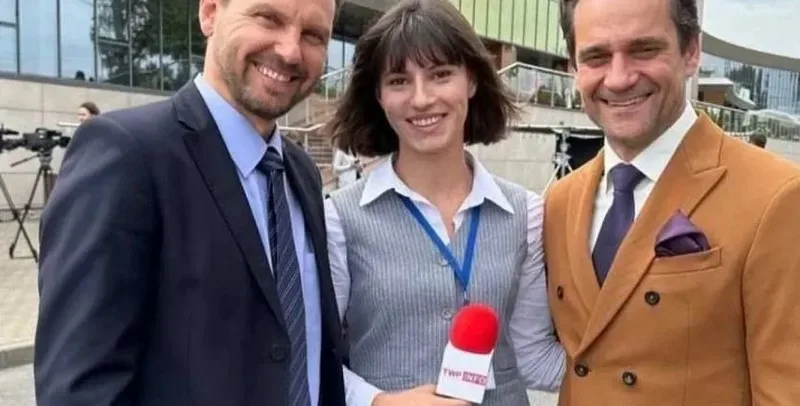 Прапагандыстка Ксенія лебедзева «дапытвае» польскага перабежчыка Эміля Чэчку. У сакавіку 2022 года яго знайшлі павешаным. Фота: інстаграм Лебедзевай