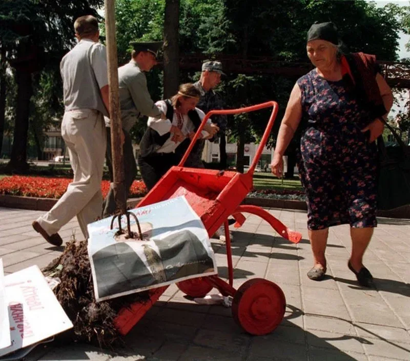 Самы вядомы перфоманс Алеся Пушкіна «Гной для прэзідэнта», 1999 год (на пяцігоддзе праўлення Аляксандра Лукашэнка). Фота: з сайта gazetaby.com