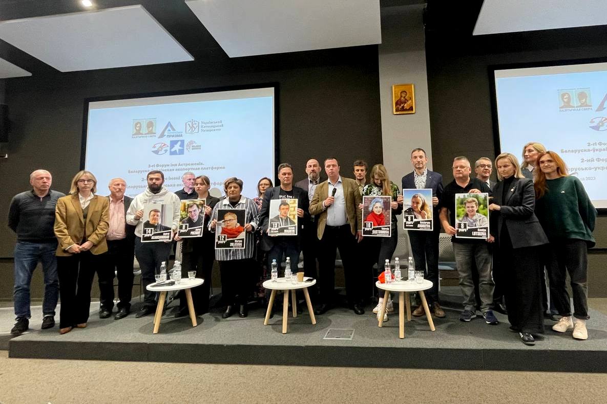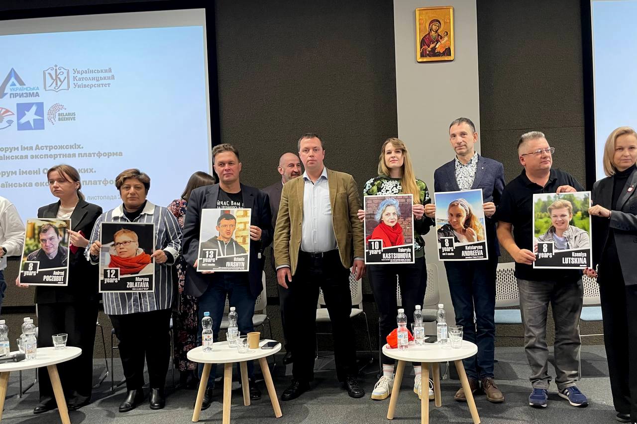 На заклік Беларускай асацыяцыі журналістаў удзельнікі і ўдзельніцы медыйнай панэлі беларуска-ўкраінскага экспертнага форуму імя Астрожскіх скончылі мерапрыемства акцыяй салідарнасці са зняволенымі медыйшчыкамі.