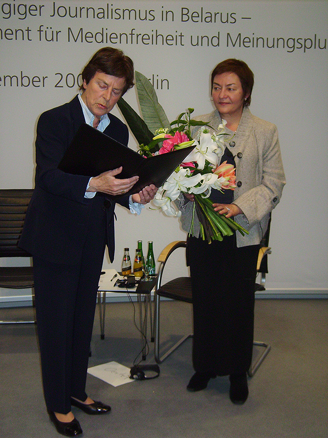 Жанна Літвіна атрымала прэмію Фонда Эберта / Берлін, 12.12.2008 г.