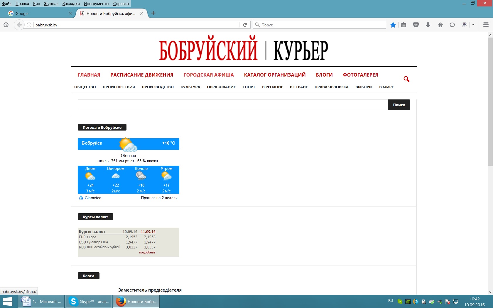 Напярэдадні асноўнага дня выбараў быў заблакаваны сайт «Бобруйский курьер»