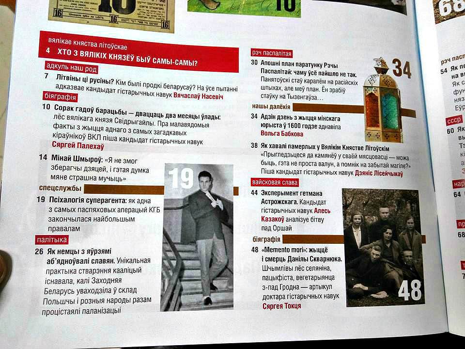 Рубрыкі часопіса: Адкуль наш род, Біяграфія, Палітыка, Рэч Паспалітая, Вайсковая слава, СССР, Народы Беларусі, Пра-свет, Турыстычныя кірункі, Наша страва, Кухонныя гісторыі, Простыя рэчы, Гаспадарка, Анекдоты, Комікс.