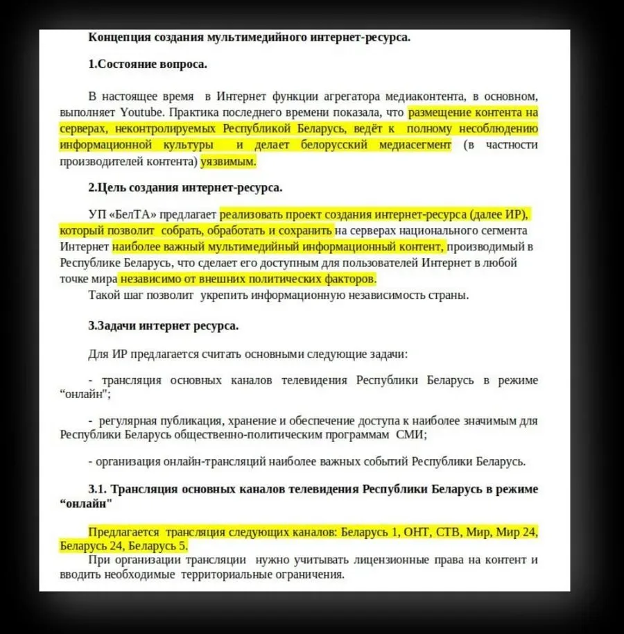 Паводле звестак «Кіберпартызан», праектам «беларускага YouTube» у пачатку 2023 года на даручэнне Лукашэнкі занялося дзяржагенцтва БЕЛТА.
