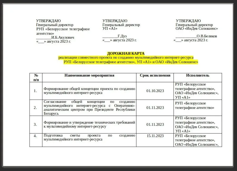 Скрыншот з дакумента «Дорожная карта». Фота: «Кіберпартызаны»