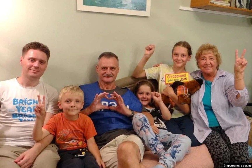 Нечаканая радасьць: зьняволены журналіст Свабоды Алег Грузьдзіловіч сустрэўся з жонкай, сынам і ўнукамі