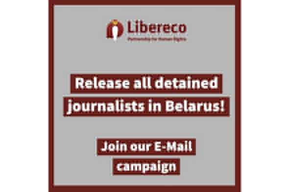 Немецко-швейцарская правозащитная организация Libereco призывает отправлять электронные обращения властям Беларуси — Министру информации Игорю Луцкому и генеральному прокурору Андрею Шведу, а также Василию Герасимову, и.о. Председателя Комитета государственного контроля — с требованием немедленного освобождения задержанных сотрудников Пресс-клуба Беларусь.