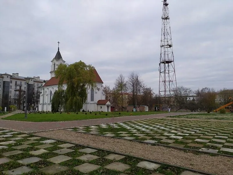 Бывшая башня-глушилка рядом с костелом Святого Роха на Золотой Горке в Минске. Фото: Liashko, CC BY-SA 3.0, commons.wikimedia.org