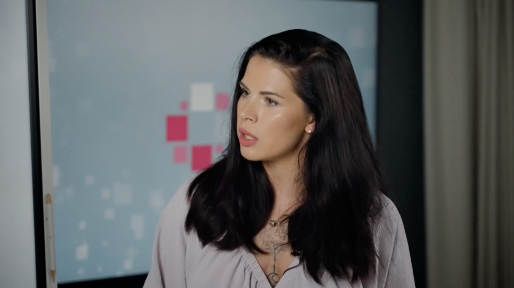 Прадпрымальніца ў сферы здароўя Надзея Дамкоўская падчас запісу новай праграмы «Белсату» «Без рэцэпту». Скрыншот з відэа: Белсат