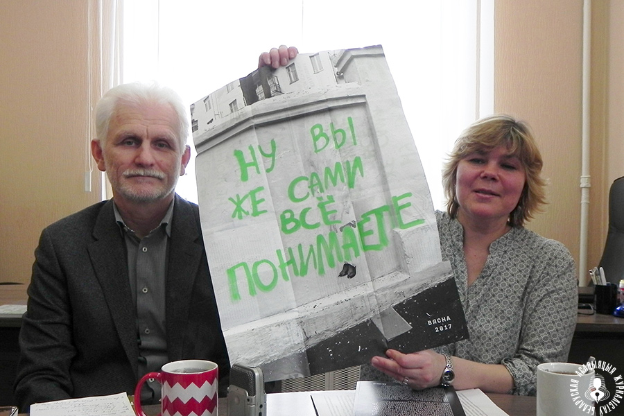 — Супервокладкай кнігі з’яўляецца постар: “Сцяна Шчоткінай” — месца ў цэнтры Мінска, на якім з сакавіка і на працягу 2017 года з’яўляліся розныя сацыяльна-палітычныя графіці. “Сцяна Шчоткінай” з замаляванай выявай і словамі паверх: “Ну, вы же сами всё понимаете!” прадстаўлена як сімвал беларускай рэчаіснасці апошніх 23 гадоў, — гаворыць рэдактар і адна з аўтараў тэкстаў кнігі Алена Лапцёнак.