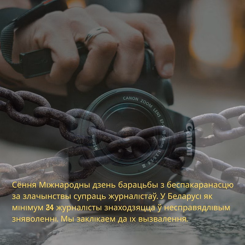 «Сёньня Міжнародны дзень барацьбы зь беспакаранасьцю за злачынствы супраць журналістаў. У Беларусі як мінімум 24 журналісты знаходзяцца ў несправядлівым зьняволеньні.