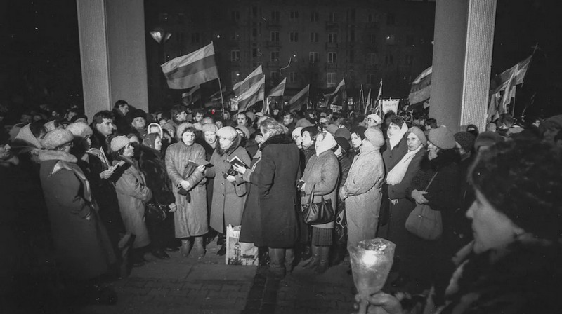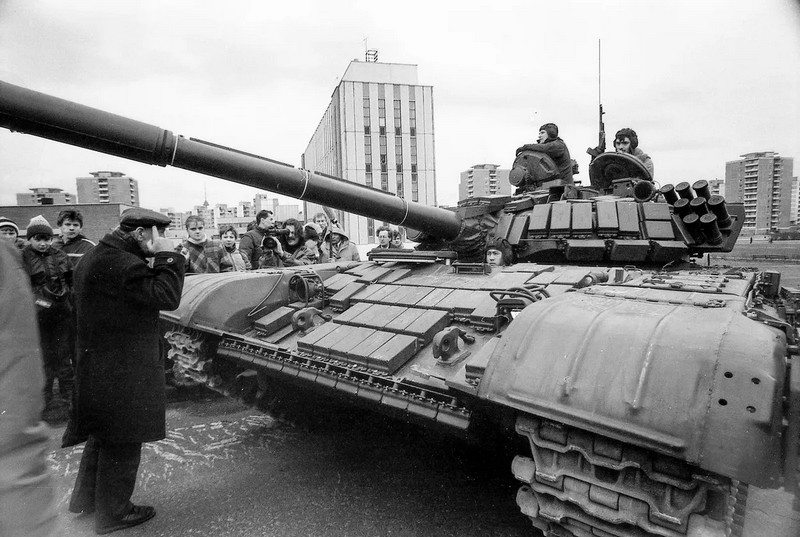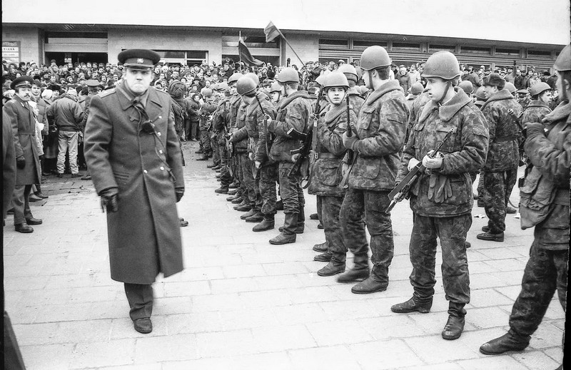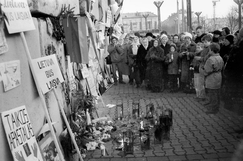 «В 1989 году я на 3 месяца поехал к родне в США. Работал на стройках и все заработанные деньги потратил лишь на одну вещь — фотоаппарат. Это был Nikon N2020. Когда я возвращался, в американском аэропорту все наши «советские» люди были увешаны кучей разных вещей, а я был только с одной. Я торопился на Балтийский путь, очень хотел успеть на него, но из-за задержки рейса на один день опоздал. Для меня это была трагедия. После, с этим фотоаппаратом я снял и 11 марта 1990-го и 13 января 1991-го, он до сих пор у меня как реликвия».